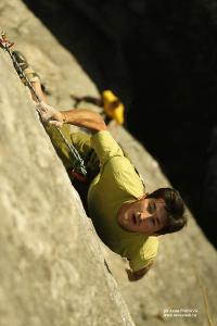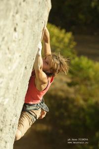 When I tried the route for the second time, I did it with the lower belay, I had pissed before the start, but the view of Piunova with giant objective made me cheerful. I climbed, striking beautiful attitudes, and there was only one though in head – about the next quickdraw.