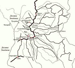 Хребет Аладаглар простирается на 30 км в меридианальном направлении с севера на юг и за долиной Мур поворачивает подковой на запад, окаймляя эту долину с юга. Этот широтно-ориентированный отрезок хребта имеет в длину всего около 14 км. Разделим Аладаглар на три почти равных по длине 14-15 километровых участка. Северным Аладагларом будем называть участок хребта севернее вершины Сарсал (3466), центральным Аладагларом - участок от горы Сарсал до вершины Гузиллер (3461,Guzeller) в истоках долины Мур, и южным Аладагларом - всё, что западнее горы Гузиллер, то есть, от пика Гузеллер до вершины Хышир (3242).