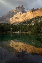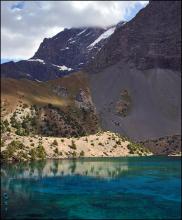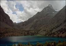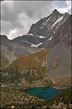 Большое Алаудинское озеро. Вершина Чапдары в облаках