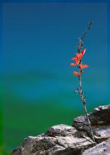 Веточка почти уже осеннего барбариса на фоне Большого Алаудинского озера