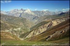 Вид на Зеравшанский хребет из ущелья реки Сурхоб