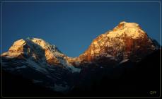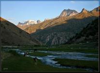 Бодхона и Чапдара в рассветных лучах. Вид из ущелья реки Бодхона