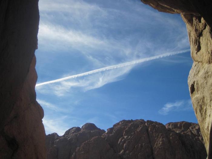 Пентхаус на Синае Подходы: от конца асфальтовой дороги 20 минут по ущелью Wadi El Arbain, миновав оазис с кипарисами до огромного камня на тропе. Далее налево вверх по склону до стены. Ориентир – маршрут Пассовер – камин рассекающий стену сверху донизу