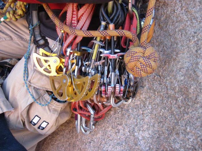 Восхождение заняло 6 часов 20 минут, благодаря быстрой работе Алексея, который всю дорогу лидировал. На протяжение всего маршрута, за исключением второй половины четвёртого питча рюкзак приходилось вытягивать на верёвке |
