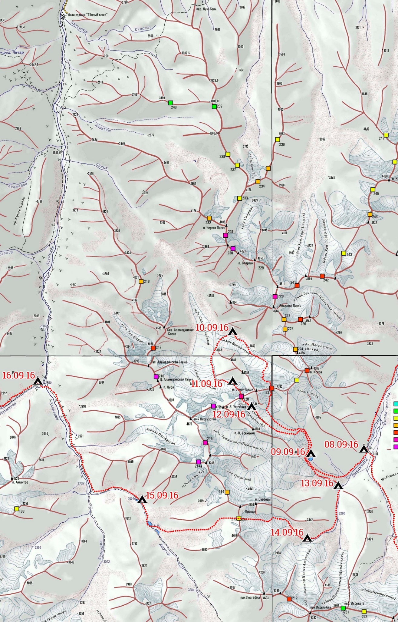 2. Учитывая устаревание картографического материала, а особенно данных по высотам и координатам препятствий - рекомендуем тщательно собирать данные о перевалах и вершинах, как минимум из 3-4 источников.