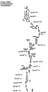 дальше лазанием выйти на полку. По полке влево 10м. Станция. R4-R7: Дальше маршрут совпадает с маршрутом "Соколиный" Время прохождения: 9-11 часов. По углам левой части Ю стены (м-т Лишаева) 5Б, VI, A3