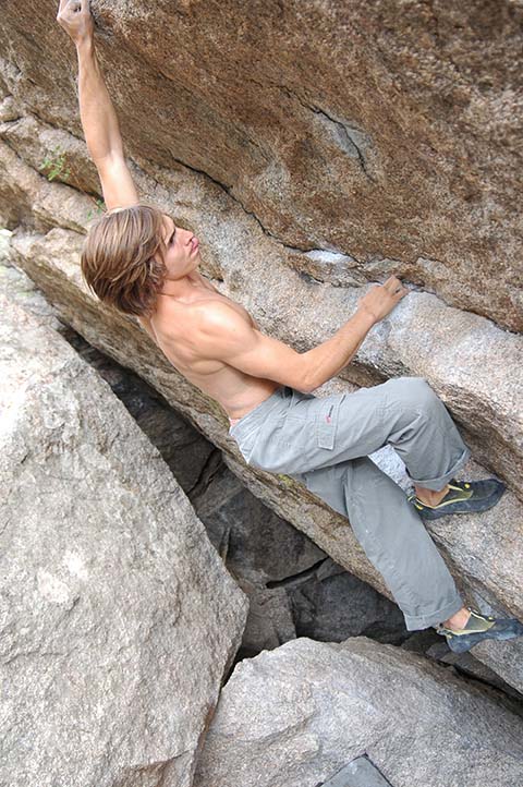 A ticket to Boston was bought to the 27th of July, and on that day I took off. I paid a visit to Vasiliy Vorotnikov, who had promised me a large climbing and not only climbing program. It’s a pity, but we didn’t manage to climb in Rumney, we went to Colorado to climb bouldering. The way wasn’t short (the distance was more than 3000km), especially because we were traveling by car, but, on the other hand, we had passed almost all the continent through and that was my first acquaintance with America. I liked Colorado a lot – in the middle of the rather deserted and plane area suddenly appeared mountains, and moreover they were not low. We stopped in Daniel Woods’s house, where, how it appeared later, were living about 6 more climbers, and even such monsters as Paul Robinson and Matt Bosley were among them. Certainly, we went climbing all together and on my eyes those guys did boulders of 8a category and higher in a few attempts, so I could only open the mouth and take photos. One of the best bouldering regions in Colorado was situated in Rocky Mountain National Park, it was placed highly in the mountains, so we had to walk a lot. For the first time I was afraid of the height of boulders – about 4 meters, and the places for falling didn’t seem to be suitable, but some days ago I got accustomed to this. The rocks there were wonderful – something like granite, but not sharp at all, the routes were mostly hanging, both with very small sharp and sloping holdings.