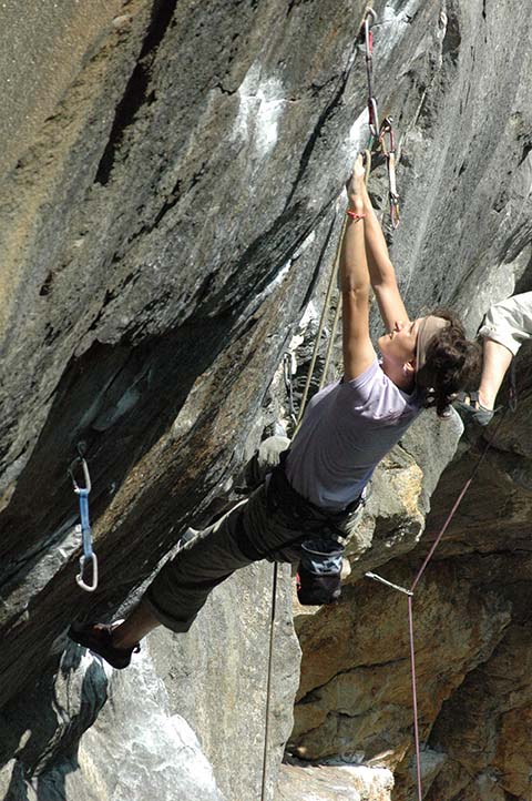 We climbed like all normal people – 2 days of trainings and 1 day off, but what was unusual – nothing could tear these guys off from the wall, they started climbing in the morning and continued until it got dark, and sometimes even when it had got dark, they tried to climb with lanterns, as for me this order wasn’t easy. Moreover, I had to climbed with men (Vasiliy, Daniel, and other), so I tried different routes of 8a and higher categories and realized with grief that most of them are too difficult for me. I wished to climb something easier: 7b-7c, but there in Rocky Mountain were only few routes of these categories, we hadn’t many mates and nobody wanted to belay me. As a result in 10 day climbing in Colorado I managed to climb several boulders of 7b, two of them I did flash (one was named “potato chip”, the name of the other I didn’t remember), several of 7b+, but on the boulders of 7c I couldn’t get a success, I did all the movings, but couldn’t connect them in a route: sometimes it started raining, sometimes – got dark… After climbing in Colorado we went to Salt Lake City, Utah state. A big sport exhibition and competitions in bouldering climbing were taking place there. The competitions were very different from those that are hold in our country. In qualification and in final rounds there were only 4 routes, two of them were so easy that even girls of 10-13 years could manage to climb them, so it was difficult to get your own place. They calculated special points to find the result: every holding cost certain amount of points and there were also bonus points for on-sight. As a result, Matt Bosley, who climbed up to the end 3 routes became the second, the first place won Ethan Pringle, who managed to climb only two routes but from the first attempt, and on the third route he reached the last but one holding. Chris Sharma became the 3rd and didn’t impressed me much, it seemed that he didn’t like to climb at the climbing stadiums at all. As for me, I became the 8th, and hadn’t understand why. I was greatly surprised with the climbing technique (or saying correctly with the lack of it) of most of the climbers there. It was felt that they on principle didn’t set their foots, and routes were done corresponding, but, on the other hand all the climbers there were very powerful. Being not satisfied with the competitions, we decided to climb routes in Maple Canyon (not far from the Salt Lake). This place impressed me a lot – it was a huge strongly hanging wall, the length of the routes sometimes reached 40 loops. But the most interesting was the structure of the rock: it was felt that someone had taken different stones both big and small, round and angular, and cemented them all together (in Russia we have such fences). There were a lot of holdings and they were really big, but one got tired so that even didn’t feel one’s hands. The most difficult route there was a route of the category of 8c, but it was not easy at all – there were very few people who had enough hardiness to climb it up to the end. In a period of 3 days I succeeded in climbing two 7c (one of them I did on-sight), one 7c+ and one 8a, for me that was not bad at all. After climbing in Maple Canyon we turned back to Colorado to climb more boulders, what the weather didn’t satisfy our wishes at all.