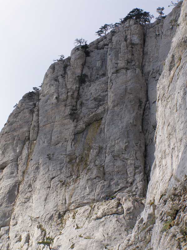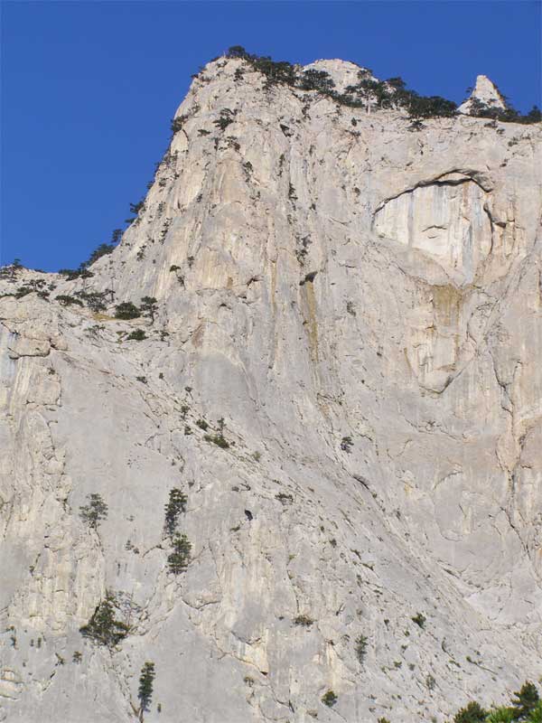 Left part of the central wall. The range to the left from “Per’ja” and a big niche “Glaza” from the foot of the wall upwards and to the left to rocks of the I – II categories of dificulty. Up to the ground covered with gravel.