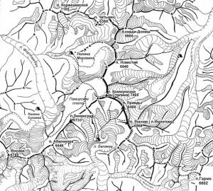 During the period 1928-1933 Pamir-Tajik expedition explored “blank spots” in the Pamir in the region of the ridges of Academy and of Peter the first, including all the region of the glacier of Fedchenko. In 1932 by three expedition groups under the direction of N. Krilenko , N. Gorbunov and I. Dorofeev, the “problem of Garmo” was solved. The group under the direction of Krilenko ascended to the ridge of Academy from the glacier Garmo and to the shoulder of the real Peak Garmo, the group leading by Gorbunov explored the region of the Peak 7495 from the East, from the glacier Bivachny, the group of Dorofeev penetrated to the region of the glacier Fortambek and the glacier of Walter. Geodesic intersections made by the groups showed that the Peak Garmo and the peak 7495 were two different summits, remote for 20 km from each other. Real Peak Garmo was located at the turn of the ridge of Academy and Darvazarsky ridge, and the peak 7945 was located at the turn of the ridge of Academy and the ridge of Peter the first. It was an outstanding geographical discovery, when the highest point if the Pamir was mapped exactly.