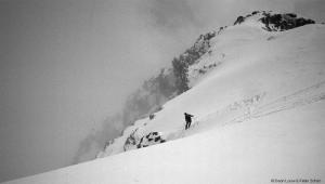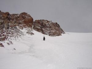 Peter ping with skis into the steep SE slopes. Photo: Deon Louw