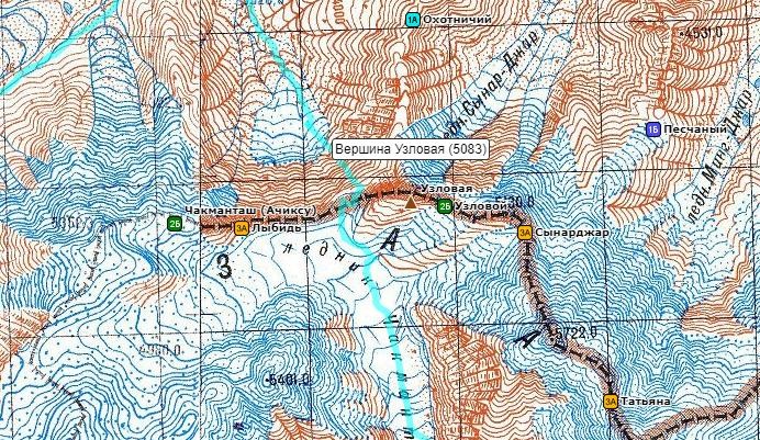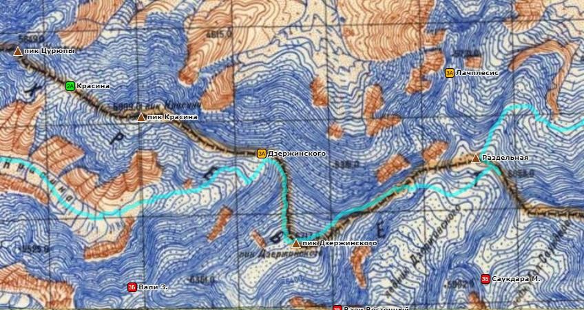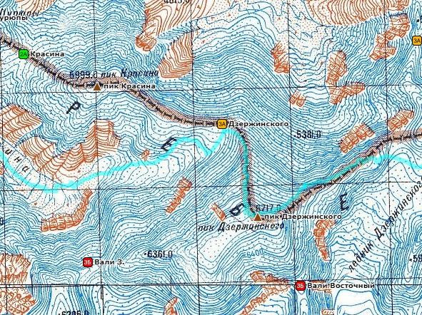 Фото 166. Путь движения с пика Дзержинского до ледника Дзержинского.