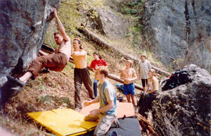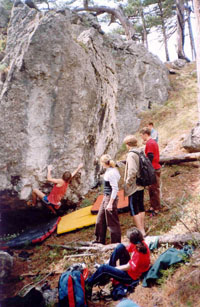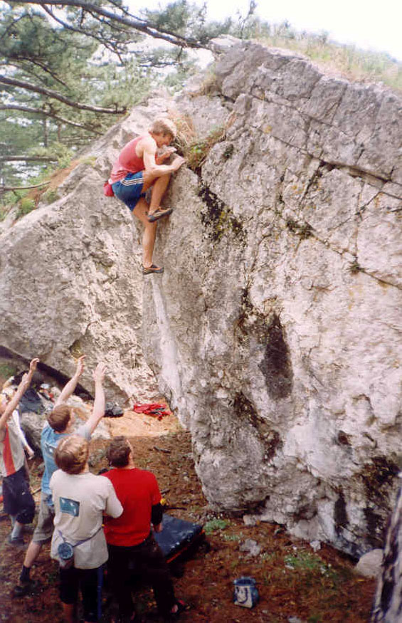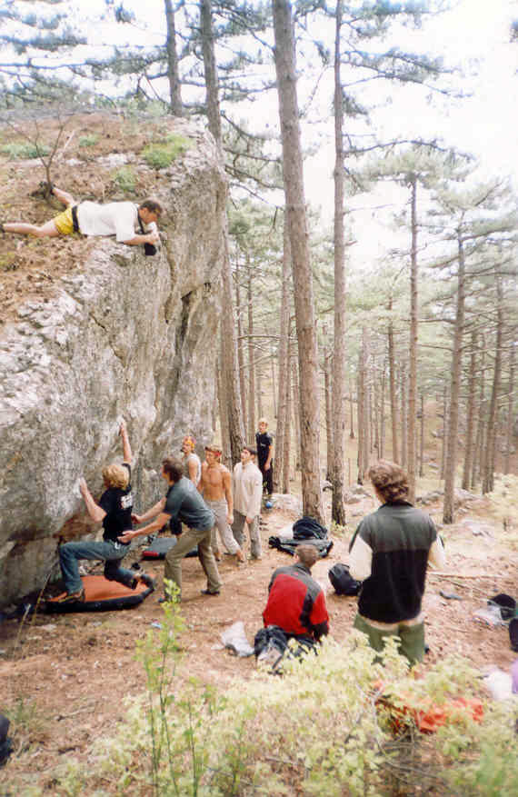 Honey is sweat even if the bee stings! Crimean bouldering - ideas aloud... Last May holidays remembered also as bouldering holidays for all rock-climbers who came to the Red Stone area! Party of sportsmen from Moscow, Lvov, Petersburg, Kiev, Gomel, Samara, Dnepropetrovsk etc selflessly was fighting during two weeks on picturesque boulders of Krasnokamenka and Sosnyak (Pine forest). There were a lot of friend communication, interesting supervision, joint plans... My numerous (and long-term) attempts to find out the leading sportsmen' opinion on chances of development of Crimean bouldering allowed to formulate three main problems. The first one consists in that fact that a lot of climbers just want to boulder completely putting aside a thought to take a bouldering pad as a precaution as a bulky makeweight to (as always) a heavy rucksack cools almost all judges of free climbing. But without a "crash pad" the number of falling can be reduced up to only one! On the one hand - "safety is above all things", on the other side - they are lazy about taking so "heavy" thing. A vicious circle! But if they could arrange for the hire of equipment for bouldering "the ice will break up"! The second problem: the most part of climbers just want to climb not losing the time for searches of boulders, line clearing, finding-out of lines' grades, arrangement of a start site etc. And all of this is quite foolproof - naturally, skilled route-setters should do that. Put it shortly, first they have to do considerable volume of earthwork, and then to make a competent guide-book with the area topo, photos of boulders with marked problems and their adequate classification. It seems that everything is extremely clear. But here one more important nuance comes to light! The matter is that only a few sportsmen (they can be counted on the fingers of one hand) can estimate lines on "wild blocks". For that simple reason, that only professionals that have the opportunity to travel abroad and to train together with legislators of bouldering rules (with the strongest foreign sportsmen and route-setters) can not toe the mark of own ambitions and reflexes generated on long routes. You should remember that estimating and naming a line (modesty suits the Samurai!). And, at last, the third problem. There is an opinion, that the Crimean limestone is too traumatic for bouldering. Really, edges, spread with openwork thorns, frequently are not good for stylish jumping. But you should just to accept the rules which native rocks dictate (how bouldering-climbers from newfangled western video clips do that). Because we do not want to kill the originality of the Crimean relief by modifying each calcareous beauty - a prickle into a mere apology for a climbing gym's edge! Summing up to the aforesaid, I have honour to inform: for the present time we are making a huge work systematizing information about the established areas of the Red Stone and sanatorium "Sosnyak". Next thing on the agenda is the areas of Shaan Kaya, Foros, Chelebi (Parus (Sails)), Sarych, Laspi, Batiliman etc. A plenty of work!! Serik Kazbekov, Andrey Vedenmeer, Shaferov Sergey are engaged in route estimation. We strongly hope that Salavat Rakhmetov, Ovchinnikov Evgeny and Evgeny Krivosheitsev help us. And we invite the women - skilled route-estimators of blocks to jazz these actions and also to make the qualified amendments. Gradually we are solving out the problem with crash pad. In "Red Stone" shop (Krasnokamenka settlement, Centralnaya Street, 22, ph. 8 067 7487615, contact: Kovalev Sergey) you can hire this specific equipment. If everything go on how it was so intended by us it would be possible to organize in Crimea bouldering festivals of European level and "Red Stone" suits for this purpose as a quite good base. Many thanks to all the guys that have taken part in lines' setting! |