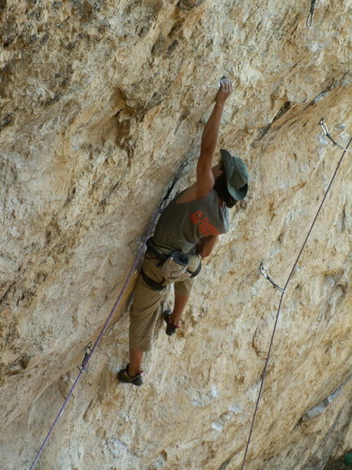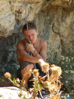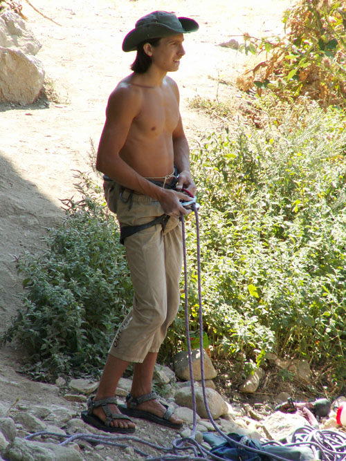 head for mistakes in the belay from elderly skilled rock-climber Mike