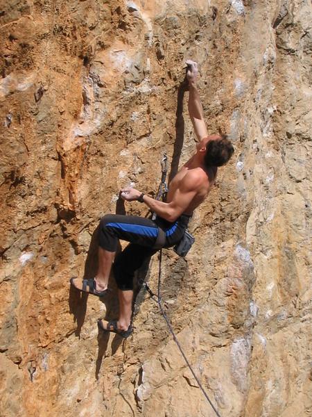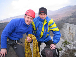 That was the time when Andrey Vedenmeijer worked of his project “Atlanta M”. Following his invitation I saw Shakaya cliff, and Andrey acquainted me with feasibilities to manage new sporting routes in the Crimea. This was the way how the idea about a new route to Uarchkaya cliff ‘Latvia” occurred, and I met some fantastic people then: Andrey and Margarita. In March 2005 we left for the Crimea that together with Andrey we would be able to realize a project – a new sporting route “Latvia” on Uarchkaya. All preparatory work was done by Andrey. We arrived when the route was already elaborated. Since there were not suitable weather and it was rainy in the Crimea during the first attempt our first climb failed. The next day weather were better and even it was sunny, but the only hindrance there on the cliff was a cutting wind that blew all the time. At the beginning of our climb we wrote the title “Latvia”. We did the route in two groups: Andrey Vedermeister and me – Andris Malashevskis, and Rolands Laganovskis, Mareks Veinbergs, Janis Vaivods. I was at the front during the first pitch, and Andrey – all the others.