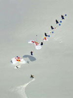 in a wing-suit along slopes of volcanoes in parallel with
