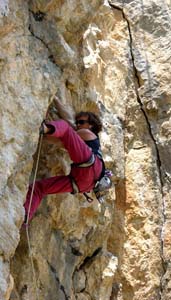As I promised, I continue publication of photos from my Crimean trip. Today I want to show you 7 new photos of Eugeny Krivosheitsev. Who is he? What is his place in tables of ranks of modern rock-climbing? It is difficult to give you precise definition... It seems he has always taken a niche in the rock-climbing temple of fame. When I came, he had already been there and now he is there. And I am sure that he will be. When I look at him I recollect young Bob Marley or sometimes even Jah Rastafari came to earth. No, of course not! Eugeny just looks like them. And I can speak long about his sports successes: Numerous Champion of Ukraine in all kinds of rock-climbing, prize-winner of World Cup stages (also in all kinds), twice World champion on ice-climbing... He has been always attracted to climbing on natural relief, he seems less interested in climbing in gyms. He started on natural rocks and till now he spends on them the most part of training time. Among his achievements there are some routes of 8b +. For example, on-sight and red point of such lines as Reini's Vibes (8c / +), a bouldering problem 8b + in La Roche de Rame (I could see that with my own eyes) and others. For sending of such lines, as Reini's (it's very long), a climber have to be of a very good climbing technique: that helps to have a rest in such places where a person of middle level does not think to do even though he has tried it 20 times. But it seems to me that even good technique does not play a part here but more likely feeling of a rock, the ability to foresee. However Eugeny shows successful strong results climbing in gyms too. When I was spending a lot of time training in Odessa, he showed me the lines in a bouldering gym materialized through his enterprise (this bouldering gym of "Odessa" mountaineering club till now is considered as the best in Ukraine). The extraordinary staying power was an attribute of Eugeny. He does not consider the line containing less than 120 moves as a worth one. One fine day we were on a visit to Alexander Paukaev in Nikopol and laid a bet to hang on sloppers as longer as each of us could. Eugeny hung about 3 minutes whereas other participants of this "funny starts" among which there were some masters of sports did not hung 2 minutes. "Passive is more physiologic!" - he always affirms. He is very sociable and communicative: always tells stories, gags. For example, in 1999 he organized a visit of French correspondents of "Roc'n'Wall" to Crimea, and then they wrote a lot about Ukrainian and Russian rock-climbers. I am deeply convinced that all of this in