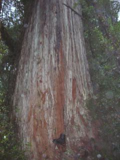Озеро с видом на высокие лесистые холмы с вечно затянутыми облаками вершинами. Помпезный вход в парк, встреча с радушными смотрителями, предлагающими ночлег, но мы должны за одну ночь успеть многое и тут же идем выше, оставив лишние шмотки. Оказалось, что здесь недавно были 2 биолога-туриста из России, которые тоже мечтали посмотреть на фицройю - южную секвойю (по-испански- алерсе), дерево, достигающее 4м. в диаметре и высоты в 55м, живущее до 2000лет.