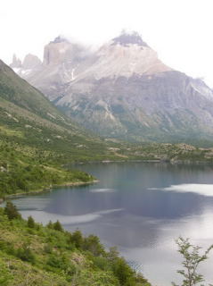 Мусор лежит на берегу плотно. Черно-белые лебеди. Типично русские деревянные домишки. Обедали отменным супом морискос из мелких двухстворчатых моллюсков, трепангов, креветок и яичного желтка. Приобрели бутылку красного, в честь новогодья. Перезд в Торрес дель Пайне через столовые горы с полосами скальных поясов, и пампу с массой гуанако. Гор вовсе не видно, сел туман. Купили непомерно дорогие билеты (по 30 евро) на границе знаменитого парка. До гостиницы, что прямо на границе природы, у конца дороги, при этом шикарной, нас подвезли на микроавтобусе через узкий мосток. Оказалось, что места по 110 баксов, а новогодний ужин- по полста с носа...Пошли по сильно эрозионной тропе вверх по ущелью до очередного места для палаток с добротным деревянным приютом альпийского типа, где тоже пригласили на праздничный ужин и, уже, за 30 с рыла. Многоязычная толпа, в основном, молодежи, греется в гостинной. На доске на десятках языков, в том числе - на русском, написано, что обувь при входе следует снимать. В результате было решено поставить палатку у водопада (место тоже не бесплатное, 6 баков) близ приюта и встречать Новый Год своими припасами, что прошло с немалым успехом, правда до полуночи уже крепко уснули.