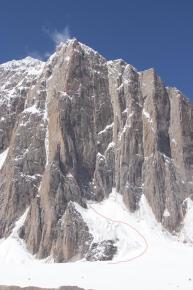 Area: Tien Shan, Kokshaal-Too range, a part of the ridge to the west of Sary-Jazz the summit is located in the main ridge on Kirghiz-China border, the face - sidewise at China .