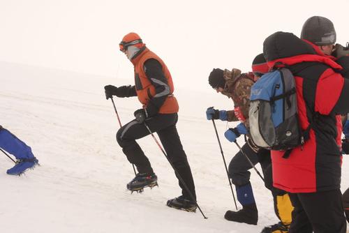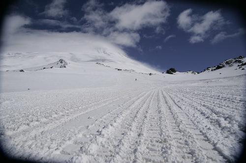 Эльбрус майский в 2009 году радует спортсменов отнюдь не майской погодой – за окном легкий снег, порой переходящий в метель, задувает серьезный ветер. Но это совершенно не мешает стартам: 7 мая на склонах Эльбруса прошли соревнования по ски-альпинизму (командная гонка), а 8 мая состоялся скоростной забег на вершину.