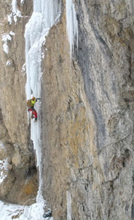Тонкий лёд не позволил организовать нормальную страховку, поэтому с левой стороны ледопада были вбиты четыре шлямбура.