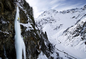 Описание: Одна из самых достойных линий в Оцтале. Лазание по внушительной ледовой колонне. Rätselburg (WI7+, 80м) Первопроход: Hansjörg Auer & Mathias Nössig 03/01/2012