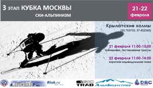 Регламент 1. Проводящие организации: - комитет по ски-альпинизму Федерации альпинизма России - Федерация альпинизма и скалолазания г. Москвы - компания «Ски-Траб Россия» - компания «Альпиндустрия». 2. Судейская коллегия: - главный судья соревнований: - секретарь: 3. Место проведения: - Крылатские холмы, место старта - 50 м на запад от главного (центрального) родника (55.753733, 37.422360). 4. Расписание соревнований: 21 февраля 2015 г. - 11:00 – 11:10 – брифинг - 11:10 – 13:00 – тренировка, тестирование трассы. 22 февраля 2015 г. - 11:00 – 11:20 – регистрация участников соревнований - 11:30 – 11:40 - торжественное открытие соревнований. Предстартовый брифинг - 12:20 - начало стартов. Порядок стартов будет определен в зависимости от количества заявленных спортсменов и будет объявлен на брифинге - 14-00 – объявление результатов, закрытие соревнований. 5. Вид - короткая индивидуальная гонка. Характеристика трассы: - суммарная протяжённость трассы не менее 3500 м, суммарный набор высоты не менее 450 м - общее количество подъемов не менее 8, половина из которых проходится на лыжах, половина – без лыж (лыжи должны быть закреплены на рюкзаке) - общее количество спусков – не менее 8, все они проходятся на лыжах без камуса. 6. Обязательное снаряжение и одежда: - лыжи с металлическими кантами не менее 80 длины лыжи, длина лыж мужчин не менее 160 см, не менее 150 см для женщин. - ботинки с подошвой типа «вибрам» (рекомендуется) - камус (пара) - крепления заводского производства для ски- тура или телемарка - палки лыжные (пара) - рюкзак (объем не менее 20 л.) с приспособлениями для крепления лыж - очки солнцезащитные или горнолыжная маска - каска альпинистская или горнолыжная - минимум 2 слоя одежды (один слой ветрозащитный) - перчатки. 7. Штрафные баллы: - посторонняя помощь – снятие - оставление (потеря) снаряжения – 5 штрафных баллов (минут) за каждую единицу снаряжения - нарушение экологических норм (оставление мусора) – 5 штрафных баллов (5 минут). 8. Регистрация спортсменов, документы. При регистрации участникам необходимо предъявить следующие документы: - паспорт (или заменяющий его документ) - желательно медицинская справка (из поликлиники, врачебно-физкультурного диспансера и т. п.) - предварительные заявки на участие в Чемпионате г. Москвы подаются до 16 часов 13 февраля 2015 г. на agent3@alpindustria-tour.ru 9. Стартовый взнос. - При подаче заявки в электронном виде до 20 февраля 2015 г. - 50 руб. - При подаче заявки после 16 часов 20.02.15 или в день соревнований – 70 руб. Форма предварительной заявки: