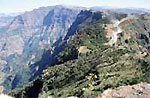 Поднявшись на вершину по узкому скальному гребню, мы увидели внизу впечатляющие пейзажи низменности со шпилями скал и огромную воронку, протянувшуюся на сотню километров.