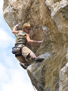Катя пребывала в Крыму с 15.08 по 5.09, и теперь к ее прошлогодним "восьмеркам" на Красном камне можно добавить еще четыре - на этот раз на Никите. Она пролезла afterwork "Бриз" 8а+, "Эскадрон" 8а, "Пашку-удальца" 8а, а также "Странника" 8а, который давно не нюхал магнезии и не сразу открыл свои интимные мизера. Кроме того, среди ее достижений "Правый рычаг" 7с+ и "Мудрый" 7с+