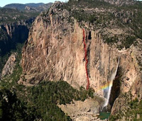 Как мы уже сообщали, поначалу они сделали рэдпоинт Subiendo el Arcoiris 5.13b (300м) в Национальном парке Basaseac, штат Chihuahua, что вблизи от расположенных там двух самых больших водопадов Южной и Центральной Америки, Piedra Volada (450м) и Basaseachic (250м).