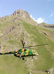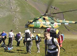 10 августа14:15 МСК Праздник Смоленской иконы Божией Матери Одигитрии. Подъем в 5:30 утра. В 6:30 в аэропорту. Первый борт осуществил заброску БЛ на 3500 и вернулся за нами. К нашей группе присоеденился корреспондент ОРТ, мы садимся в вертолет за штурвалом которого боевой генерал(!) Герой России. Это вселяет уверенность и оптимизм.