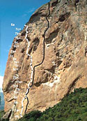 Сложность маршрута по участкам: 1)6b, 2)7a+, 3)6b, 4)6a, 5)7a+, 6)7b, 7)7c+, 8)7a+, 9)7b+, 10)6c+, 11)7b, 12)7a+, 13)6a, 14)7c, 15)7a+, 16)6c+, 17)6c, 18)7b+, 19)7b+, 20)7c+, 21)6a