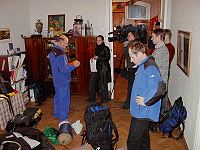 Экспедиция "Санкт-Петербург Эверест - 2003" успешно стартовала. 30 марта из Москвы в Катманду вылетели Анатолий Мошников и Николай Тотмянин, а 31 марта - все остальные российские участники: доктор Дмитрий Прютц, Марина Ершова, Владимир Гайдамак, Андрей Дульский, Владимир Белоус и Олег Наседкин. 1 апреля в Катманду к ним присоединится Том Мастерсон и 3 апреля экспедиция должна начать свой путь в Тибет к Эвересту.В аэропорт "Шереметьево 2" наши альпинисты прибыли в сопровождении друзей и родственников, которые очень горячо пожелали им доброго пути и успеха на Эвересте. Числом провожающих особенно отличился Олег Наседкин, который, видимо, на данный момент является самым знаменитым и популярным альпинистом не только Москвы, но и Зеленограда. Получив виндблоковые костюмы от нашего спонсора "RedFox", перепаковав багаж и выпив по бокалу шампанского, наши гималайцы легкой и непринужденной походкой (чтобы не выдать реального веса своих экспедиционных баулов) через зеленый коридор направились к стойке регистрации. И через какое-то время скрылись в аэропортовых недрах. Все это произошло достаточно быстро и похоже, что в этот раз у них не возникло каких-то больших проблем с оплатой их очень и очень немаленького багажа.Команда экспедиции в ее настоящем составе является действительно очень сильной и, если Эверест не преподнесет каких-то неприятных сюрпризов, то вполне можно надеяться на успех экспедиции. Четверо наших альпинистов имеют опыт восхождений на восьмитысячники, а все остальные по несколько раз были на семитысячниках: у Анатолия Мошникова за плечами два восхождения на Эверест и одно на Дхаулагири (все без использования кислорода), Марина Ершова и Олег Наседкин были на Чо-Ойю и Шиша-Пангме, Владимир Белоус также поднимался на Шиша-Пангму.