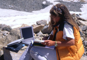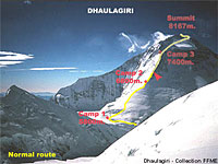 В среду, 7 мая Жан-Кристоф вышел из ВС в лагерь 1. Все вещи от предыдущих забросок завалены снегом толщиной 1м70см. Сегодня на той высоте, где он находится, погоды опять нет, целый день идёт снег. Тропить - это настоящая каторга! Опираясь на благоприятный прогноз, Жан-Кристоф планирует подняться в лагерь 2 на высоту 6800м в четверг, 8 мая и в лагерь 3 - 9 мая