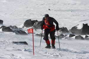 Дистанция забега имеет два промежуточных этапа: на скалах Пастухова (4800 м) и на седловине (5300м). 4800 метров – этап квалификации, все, кто не дошел до этой высоты за 3 часа, на дальнейший маршрут не выпускались.
