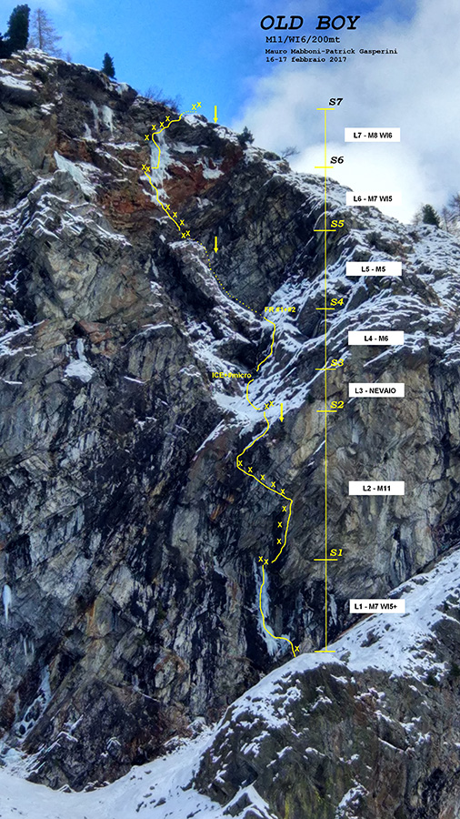 16 и 17 февраля 2017 года Мауро Маббони и Патрик Гасперини (Mauro Mabboni, Patrick Gasperini) совершили первопроход микста "Old Boy", что находится выше Лиллаза, ближе к Конге, Долина Аоста, Италия.