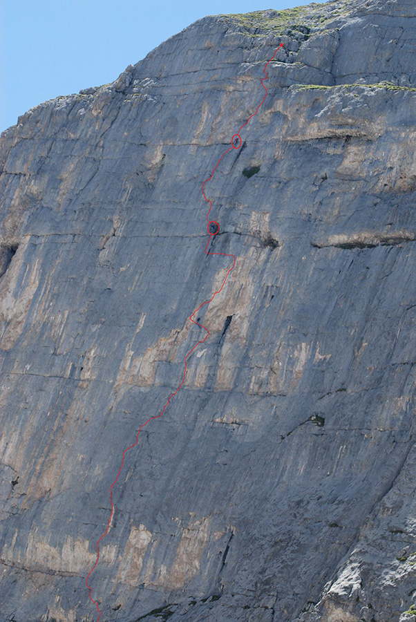 Линия имеет протяжённость 210 метров, категорию сложности 7b+ и названа "Soldi e paura mai avuti", пройдена свободным стилем.