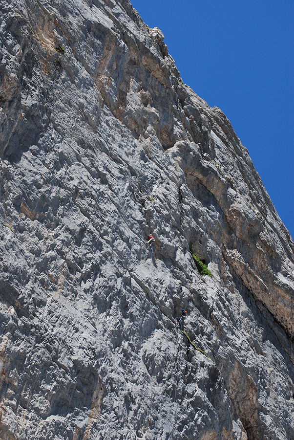 Алессио Роверато и Анжела Корраро (Alessio Roverato, Angela Carraro) пролезли новый мультипитч Distensione (180м, 7a+ max, 6c+ obl), гора Шпиц в Валь Гадене (Вальсугана, Италия).
