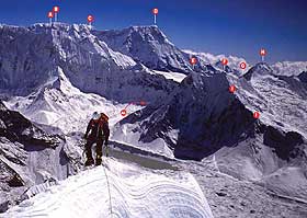 Через 500 м на вершине хребта они обнаружили спусковые петли, но продолжили лезть до предвершинной башни, где была последняя ключевая веревка.