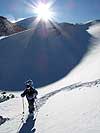 Это была снежная доска толщиной около метра, которая пропахала вниз метров 10-15 и остановилась, засыпав Сережу по колено. К этому моменту он уже находился недалеко от камней, то есть близко к краю лавины.