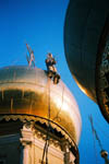 Купол снизу выглядит блестящим, а когда он рядом, то занимает пол-неба и просто сияет. От этого минут через десять начинают болеть глаза и приходится отворачиваться, переводя взгляд на зеленые кроны деревьев...