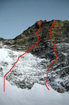 Состояние маршрута было превосходным, лед - твердым, линия следовала примерно вдоль системы кулуаров непосредственно слева от линии выдающегося первопрохода Джима Логана - Магса Стампа.