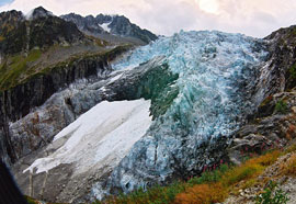 Двигаемся по тропе в направлении хижины Argentiere hut. Тропа выводит на ледник и примерно через километр возвращается обратно на скалы посредством железной лестницы.