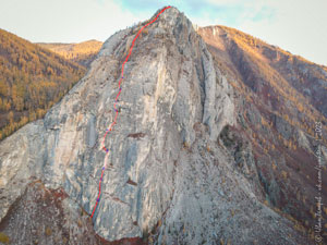 Вершина 2456 сразу привлекала внимание своей глобальной стеной. Довольно напряжённое лазание, затруднённое малым количеством мест для постановки закладок и забивания крючьев.