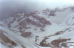 После спуска мы попадем к заброске уже этого года и после этого уйдем на траверс Чакрагиля (6760м)