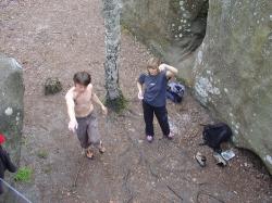 About 20 climbers of all nationalities gathered on the glade with boulder-pads. They chose one of the most popular problem and matted everything around they tried it by turns. If a climber succeeded he would get a burst of applause. There were cheering voices from all the side: Come-on! Ole! Come! Get stuck in! Go on! etc.