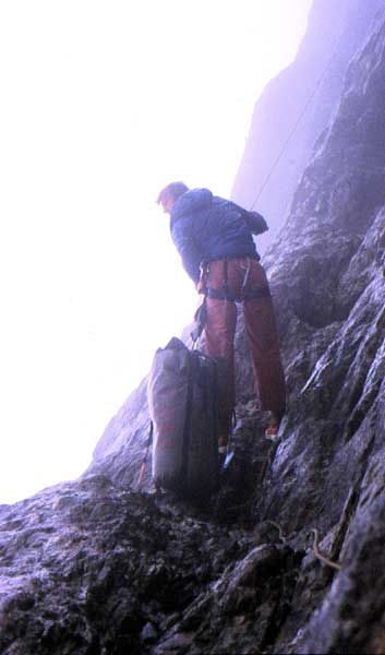 Having become imbued with this new, dangerous for himself, but salutary for humanity philosophy, more and more, one day Jury reached a decision, that impressed him with its simplicity and hugeness. He gave up using belaying ropes and hooks! Since that moment only his inner flair has become his belay, this demands learning inscrutable inner world of mountain nature, doesn’t allow looking aside from united work of body and spirit, that is impossible for men, beyond the limits of his customary three-dimensional world. Worshiping mountains has come instead of subduing them.
