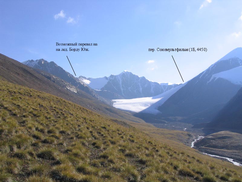 Soyuzmultfilm pass (1B, 4450, first passing) The snow and ice pass Soyuzmultfilm lies in the south-west part of Ak-Shijrak region. The pass connects the Kazan glacier with one of right tributaries of North Kara-Sai glacier. The Soyuzmultfilm provides the easiest access to Kara-Sai, as the neighboring passes – the East Akbel, South Bordu , Gliaziologov pass – are all of category 2A and require fixed ropes.