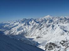 We passed the night on the shoulder and in the morning quickly run down, along the edge, via the summit 4310. On the turning of the main branch of Bezengiysky glacier, Kirill Ivanov and Peter Kuzenkov met us, they gave us tea from thermos. By darkness we came to the camp…